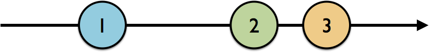 이 Observable은 1, 2, 3 세 개의 각각 요소들을 방출합니다.